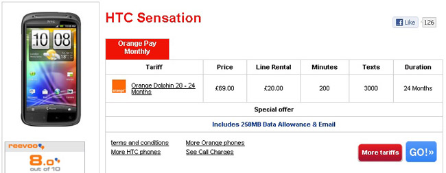 Online retailer Phones4U has an awesome deal for those of you looking to grab themselves the HTC Sensation, but don’t want to get into an expensive monthly plan. The offer includes paying 69 GBP upfront and committing on a two-year 20 GBP a month contract from Orange UK. That money gets you 200 voice minutes, 3000 text messages and 250 MB of mobile data per month. I don’t like the mobile data part, but then again it seems kinda fair for 20 pounds. Of course, if you opt for a better (read: more expensive) plan, you’ll get more data while also paying less upfront.