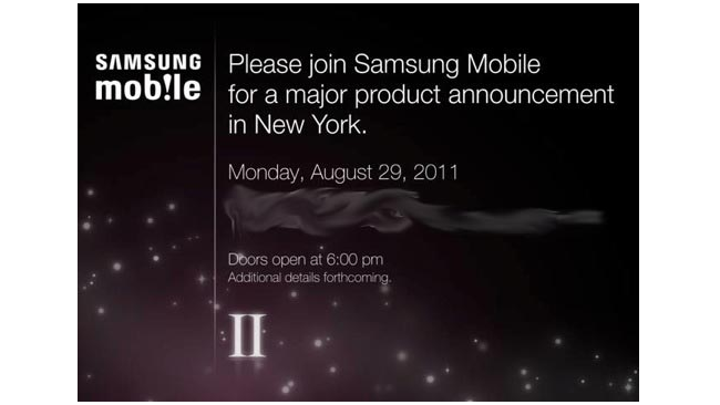 While it seems like it’s taken forever, the Samsung Galaxy S II will soon be announced for the US. Samsung has begun sending out invitations for an event in New York City on August 29th. Given that there’s a large, “II” at the bottom of the invitation, there’s little debate as to what the announcement will be for.