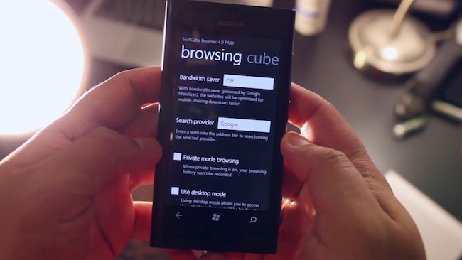 Enter SurfCube 3D for Windows Phone. Now we’re not exactly sure whether or not Windows Phone supports alternative browsers in the Android style way of allowing new browsing engines or in the iOS style of allowing custom skins, but we really like what we’re seeing here. Mark Guim from The Nokia Blog demos the easy to use interface that’s essentially a three dimensional cube, and best of all it actually renders websites that the stock Windows Phone web browser (Internet Explorer) simply chokes on. We’re trying to get in touch with the developers to figure out how they’re doing that, but our gut feeling is that they’re spoofing their user agent. In other words, they’re telling Facebook’s servers that it isn’t a Windows Phone requesting a webpage to render, but instead an Android or iOS device.