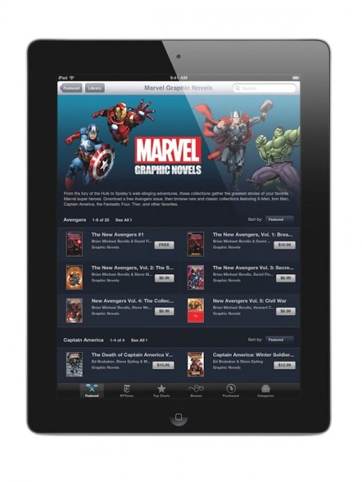 Finally, comic juggernaut Marvel has announced a partnership with Apple’s iBookstore that will bring over 80 graphic novels to iBookstore. Comic book junkies have been patiently waiting for Marvel to release digital copies for a few months now. The new deal will allow iOS users access to longer graphic novels directly through the bookstore, which is more convenient when compared to the shorter versions you’d find in the comic giant’s iPad app.