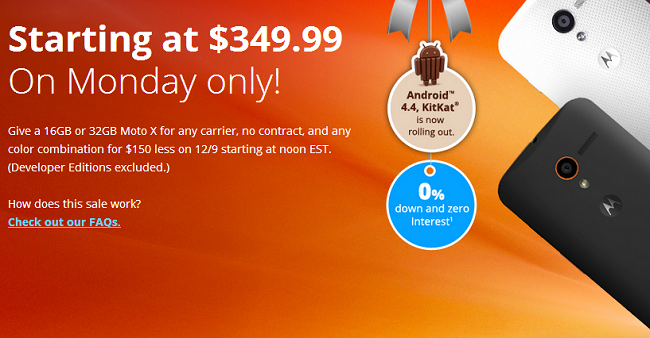 Remember that $150 off a Moto X deal that Motorola was running on Cyber Monday and again on December 4th? Well, because of the Cyber Monday foul up where customers couldn’t get the deal, an extension of said deal has been granted, and it starts at 9AM Pacific time today!