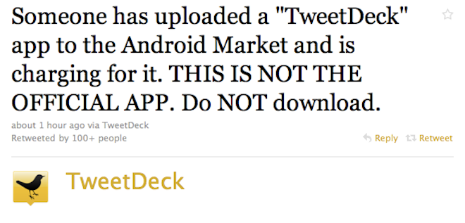 PSA: Twitter users, beware the counterfeit TweetDeck app in Android Market