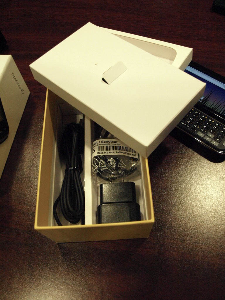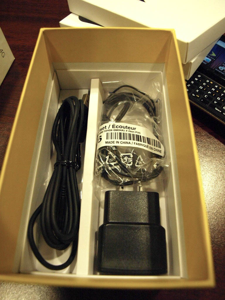 The first thing you’ll see when unboxing the handset is the big 4-inch Super AMOLED display that sits flush in its smooth slab of a front face. Pull the tab on the phone tray, and you get access to some documentation. Pull a tab on the document tray, and you’ll be greeted by a microUSB data cable, wall charger brick, and a pair of really impressive in-ear headphones. It used to be that smartphones would ship with sub-par headsets with our phones, but the Sprint Epic 4G steps it up a notch with a high-quality looking headset/earphones.