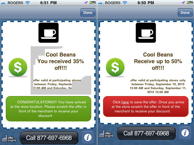 Poynt, a location-based search app for BlackBerry, Android and iPhone, has announced a new service for vendors called the Offer Engine, which integrates with their app to offer those nearby with promotions in an effort to get users to swing by. With the help of a dashboard, merchants can determine the radius in which their ads are active, view when customers activate offers, and if there are any other businesses in the area using Poynt promotions.