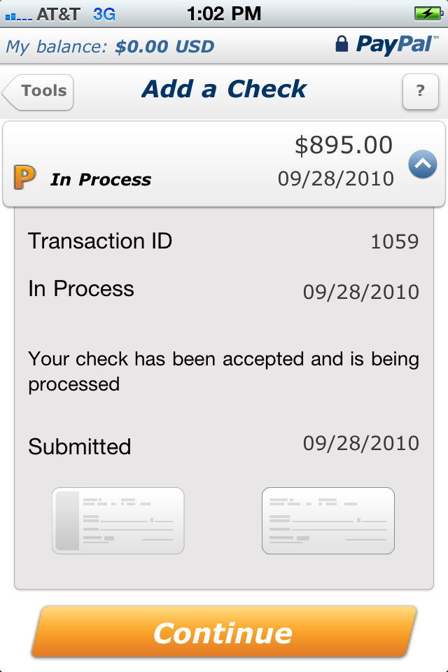 Last week, we had heard that the PayPal app for iPhone would be able to take pictures of checks and deposit them into your account; today, the new feature has been released, and is ripe for the picking in the App Store. The one snag is that it takes 15 days for the check to clear, which might be longer than what it would normally take for you to just swing by the bank, depending on your situation. On the plus side, there are no fees for using the service, just snap a pic and wait. On top of support for Bump and donations, the app is coming along really nicely.