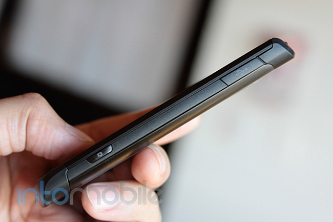 Most phones nowadays are favoring the touch sensitive button look to keep the front of their phone completely smooth, but the LG Optimus 7 decided to go with a raised Windows, Back, and Search buttons. The reason for the raised Windows button would have to be so it’s easy to find when you’re not looking at your device. The back and search buttons are easy enough to find through blind use since they’re at the edge, but its raised buttons certainly make it near impossible to miss.