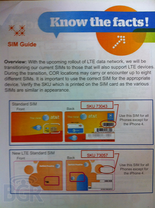 AT&T tells employees to verify the SIM card is correct by checking the SKU on the card even though the new LTE cards are visibly different, just to be safe we’re assuming.