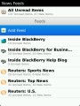 It’s a decent, if simple app right now, but I can’t see myself switching away from BerryReader without some native two-way syncing with Google Reader. Catching up on the odd story via mobile is handy and all, but ultimately useless if there’s no desktop component since that’s where I actually do anything with the stories. In any case, News Feeds will be going live in the BlackBerry App World Test Center sometime today. I’ll update this post with a download link as soon as it’s ready. In the meantime, here’s some screenshots.
