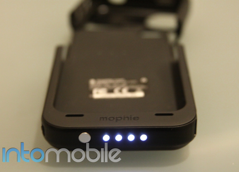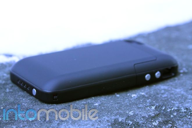 There are two ways to use the accessory: you can have it turned on continuously and your iPhone 4 will use it as its primary source of power before using its own battery, or you can put the case on standby until your iPhone’s battery is out of juice. The latter is what Mophie recommends in order to double your battery life. You simply put the phone in the case and leave the switch off – when your iPhone 4 needs more power, you click the switch and you’ll hear the indicator on your phone as you would when you plug it into any other power source.
