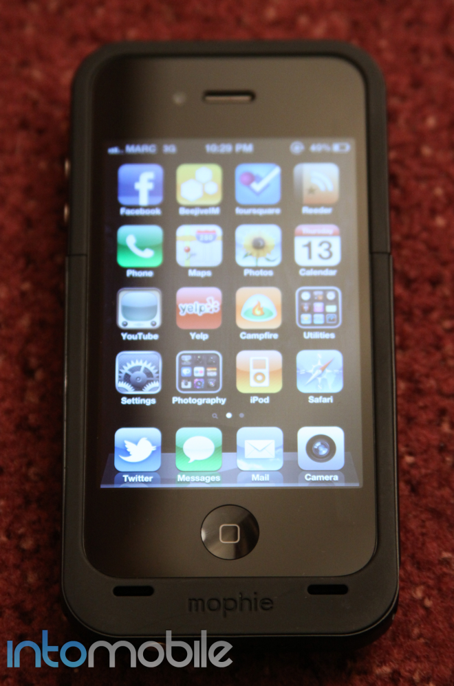 Mophie claims that the Juice Pack Plus will double the battery life of your iPhone 4. Now, the smartphone’s battery is excellent enough that it should get anyone through the day, but for added juice it seems to do the job exactly as claimed by Mophie.