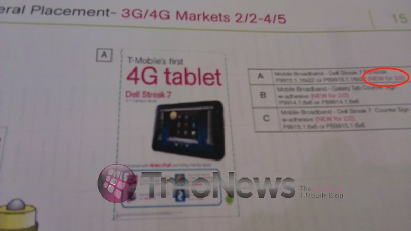 The Dell Streak 7 was announced nearly two weeks ago while we were at CES, and we caught a brief and distant look at the device during T-Mobile’s press conference. While no release dates were mentioned, it looks like we might be seeing the new tablet sooner than later. A leaked image of promotional materials from T-Mobile shows that the Dell Streak 7 may be launching February 2.