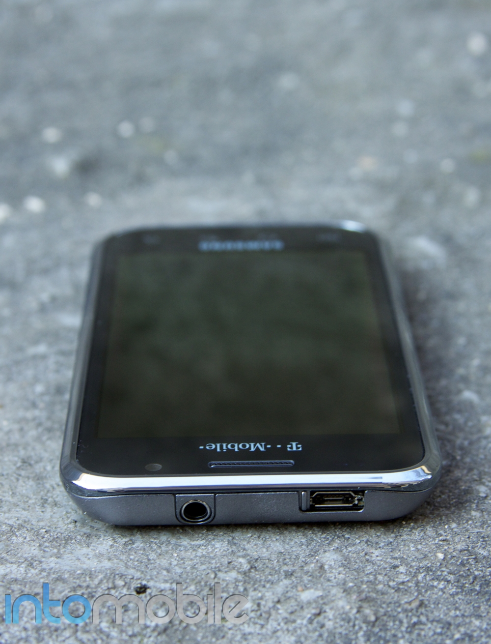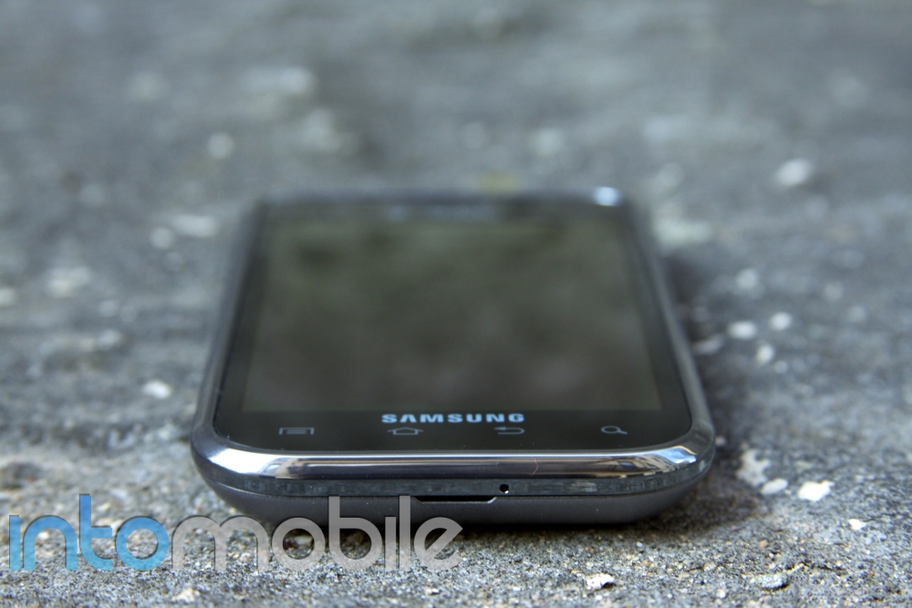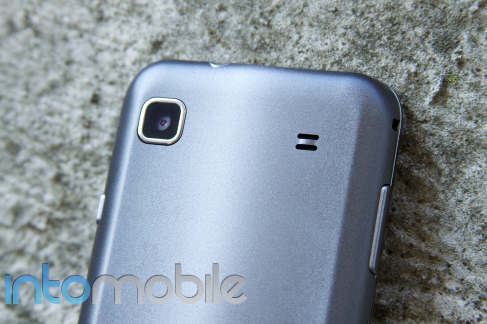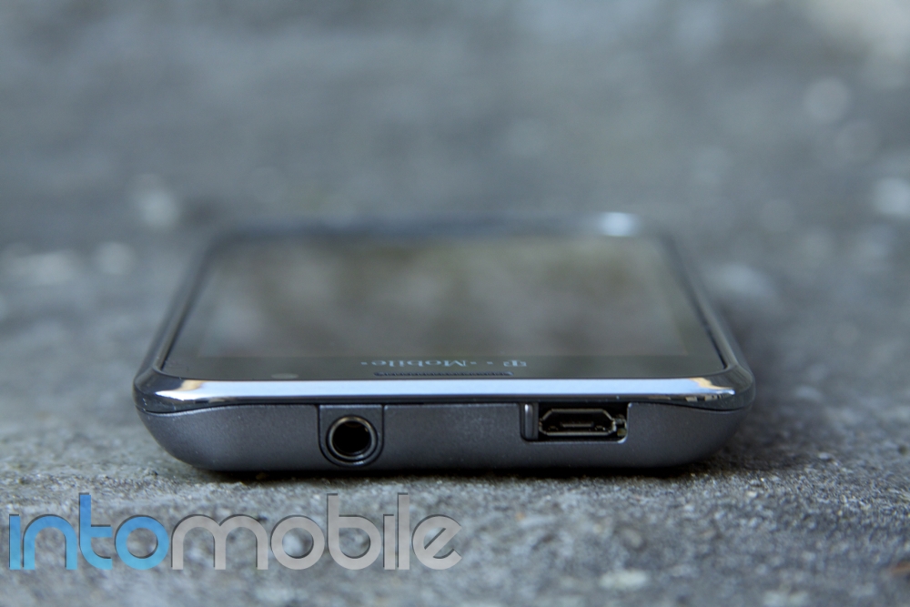 At the face, you’ll find the 4-inch Super AMOLED capacitive touchscreen display with the four capacitive Android home keys sitting below it. There is also a front-facing camera for self-portraits and video chatting, which can be used with the pre-installed Qik video software. There is a small hole for the microphone below, a basic volume rocker on the left side and the power/sleep button on the right side. Some find the placement of the power button a little unorthodox and annoying, but it’s easy to get used to after a few days. At the top of the device, there is a 3.5mm headset jack and the microUSB port, which is protected by a small sliding mechanism.