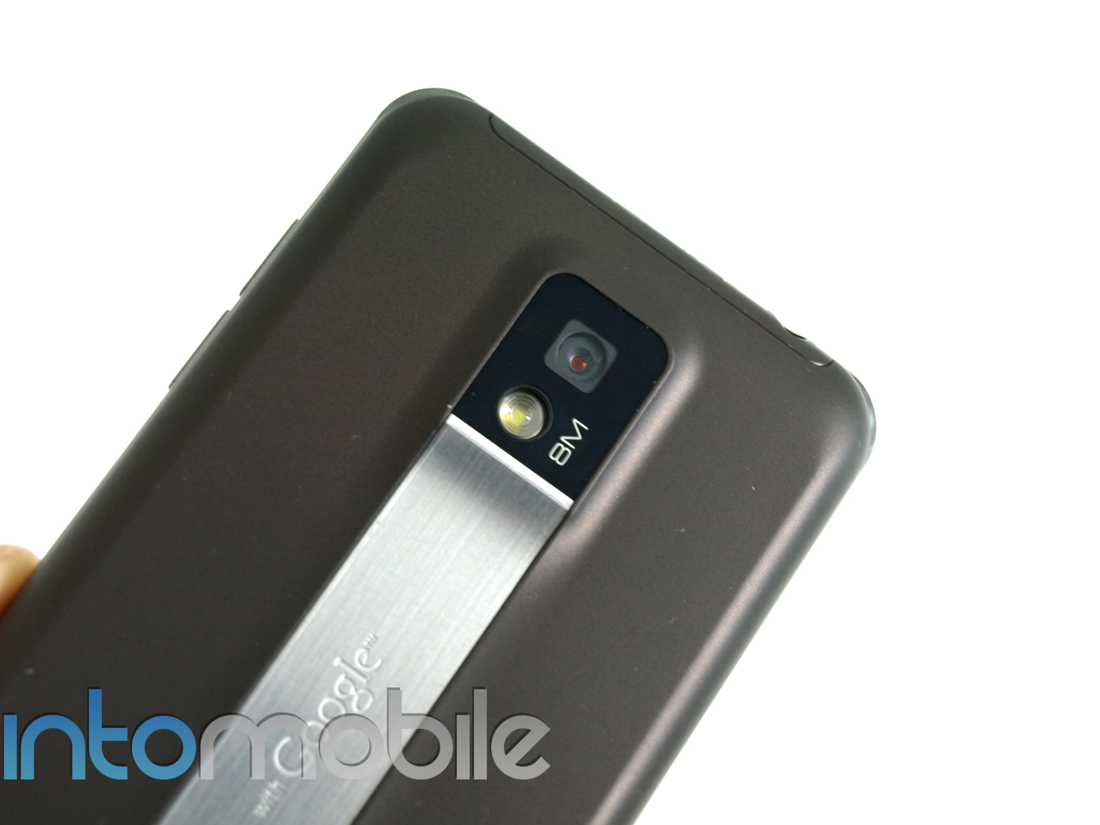 The back of the G2x is done up in a soft touch finish, and is easily removed by a tab at the bottom. Here you’ll find the 8 megapixel camera and single LED flash, which is slightly raised, but less dramatic than what you’d find on Verizon’s Droid X. There’s also a metallic strip below the camera that bears Google’s logo, and while it’s nothing spectacular, we like the look of it, even if it’s useless.