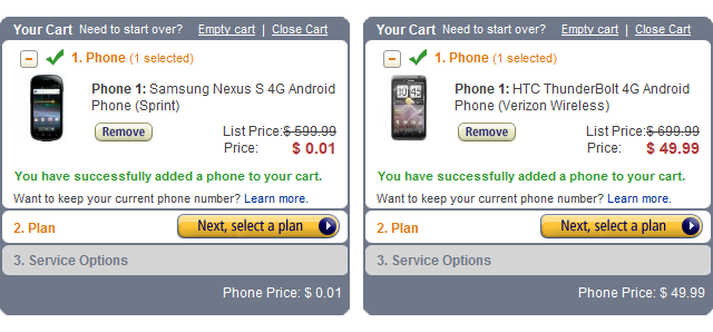 Amazon Hot Deals: Sprint’s Nexus S 4G for $0.01, Verizon’s Thunderbolt for $49.99!