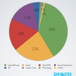 59% picked voice as their top choice for communicating with family, 43% for talking with work colleagues, 38% use it first among friends. The study also broke up the data by gender, and showed that men overwhelmingly preferred to use voice over women, which surprised me, but then again, the last study Harris did showed men used VoIP more. Although text messaging played third wheel to calling and e-mail in most cases when it came to the top pick, SMS was used by between 40% – 60% of respondents across all categories at least occasionally. Social networking figured in prominently, though microblogging (i.e. Twitter) and video calling both saw negligible usage.