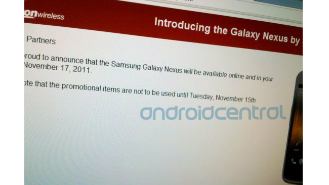 There are a handful of predicted launch dates for the Samsung Galaxy Nexus but the November 17th date has popped up yet again. According to the latest leaked Verizon document, the first Android 4.0 Ice Cream Sandwich device could be yours in just two weeks time.