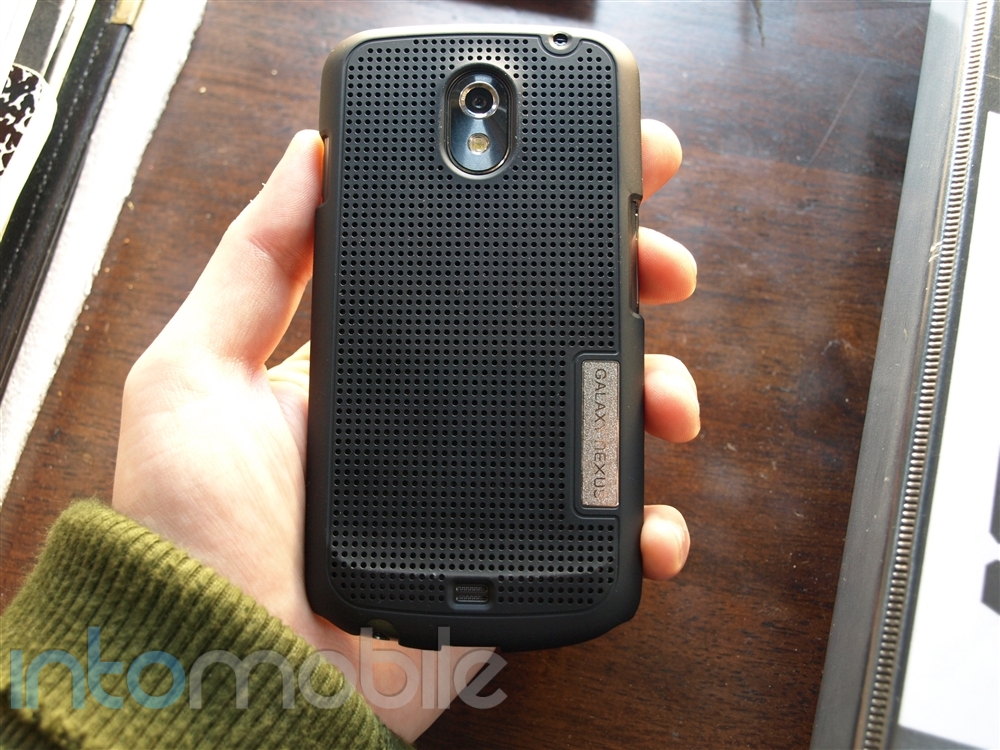 After getting back from CES, I had forgotten about the case and promptly opened it up. The case itself doesn’t look like anything special but it does have “Galaxy Nexus” all chromed-out in the back, with a vented backing. I snapped it on and fell in love. This is definitely the case I was looking for and it adds virtually no bulk whatsoever.