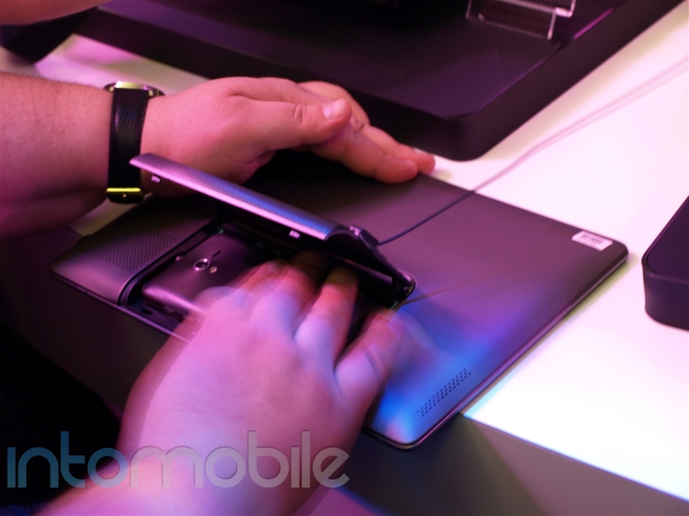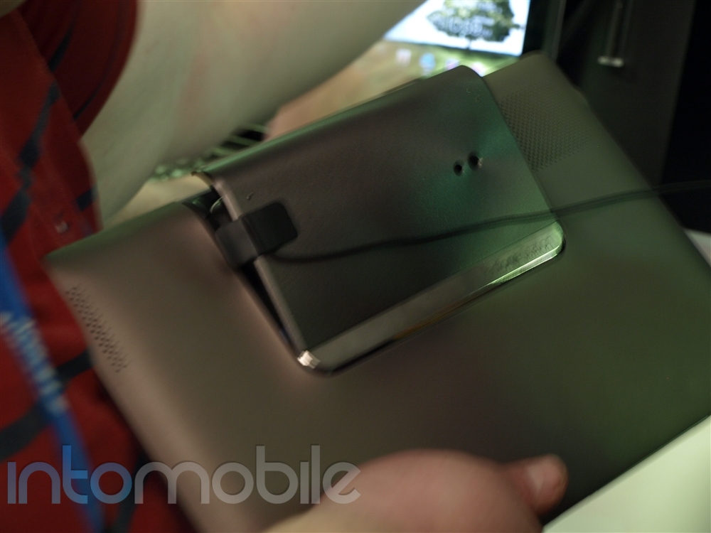 The phone easily fits the tablet shell, which is a bit bulky on the back where the phone fits. It [tablet shell] also extends the battery life (up to 5 times), while expanding the screen to 1280×800 pixels resolution. Moreover, when used in a tablet mode, users also get a slightly better 1.3-megapixel front-facing camera.