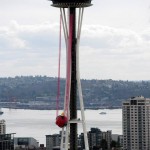 Angry Birds Space obviously takes place in space but how did those birds get there? By using a gigantic slingshot off Seattle’s Space Needle, of course.
