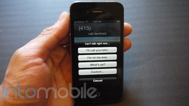 Another feature that’s been absent from iOS until now is you can reply to a call with a text message. If you’re on the go and can’t take the call at that moment, you can easily reject it and have a text send to the caller. As you’d imagine, there are a few pre-written texts messages that you can choose from, or create your very own.