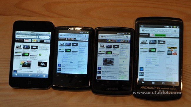 • Archos 52 Titanium- This handset sports a bigger screen than the rest, but less impressive specs than the 48 Platinum. It has 800 x 480 pixel screen, a 1.2 GHz dual core processor.