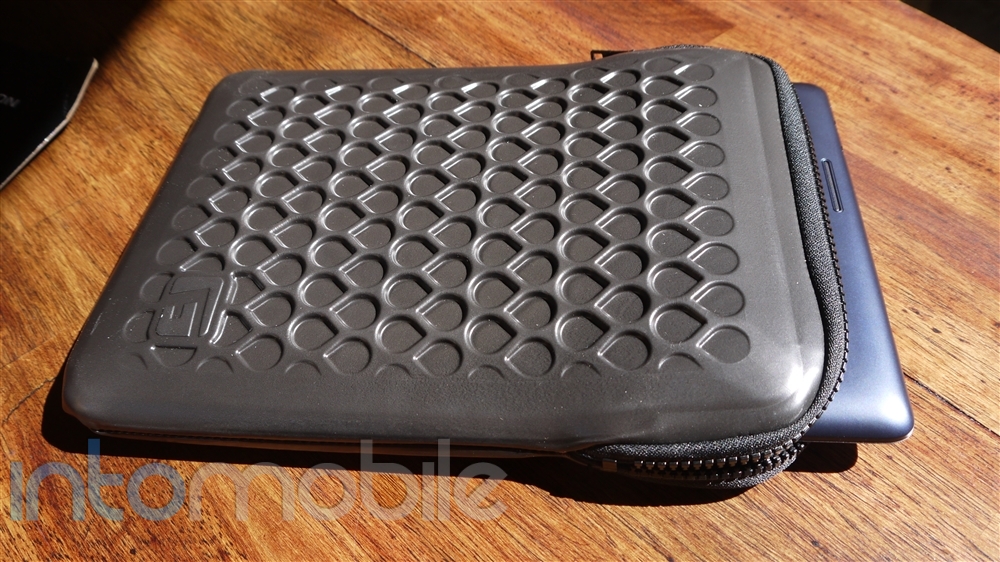 The material on the case feels soft to the touch, and has a slight “squish” feeling to it. Said material is G-Form’s RPT and Poron XRD, and will stiffen upon impact. You really wouldn’t know how much impact this case can withstand when you’re carrying it around, so there’s a nice balance between protection and style. The top of the sleeve is lines with a sturdy zipper that goes over the corners of case slightly, allowing for an easier grip for getting the tablet out.