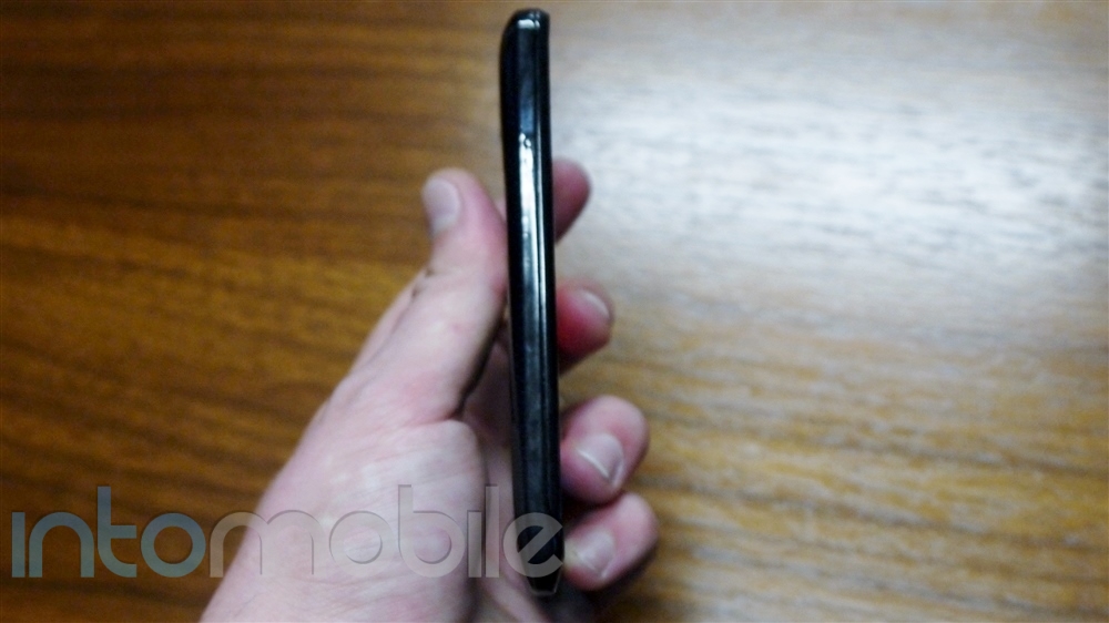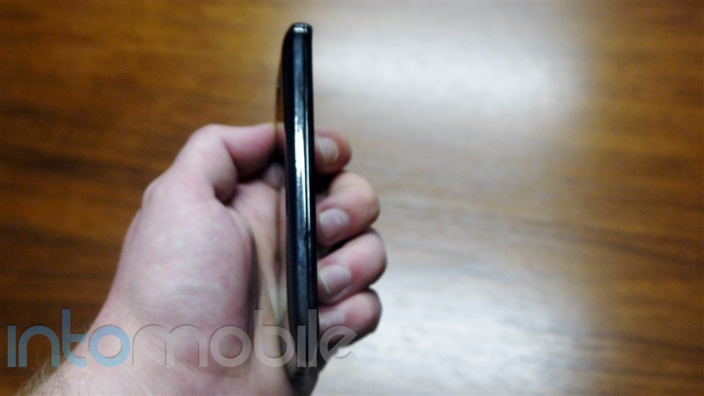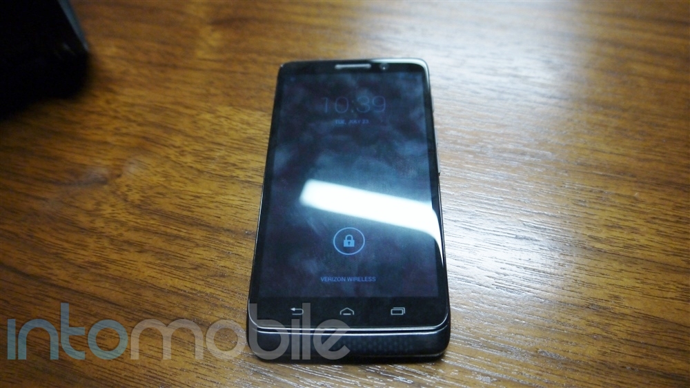 The front of the Mini is essentially all screen, which is reminiscent of the Droid RAZR M. And that’s basically what the Droid Mini is — an upgraded Razr M, and we’re pretty happy about that.