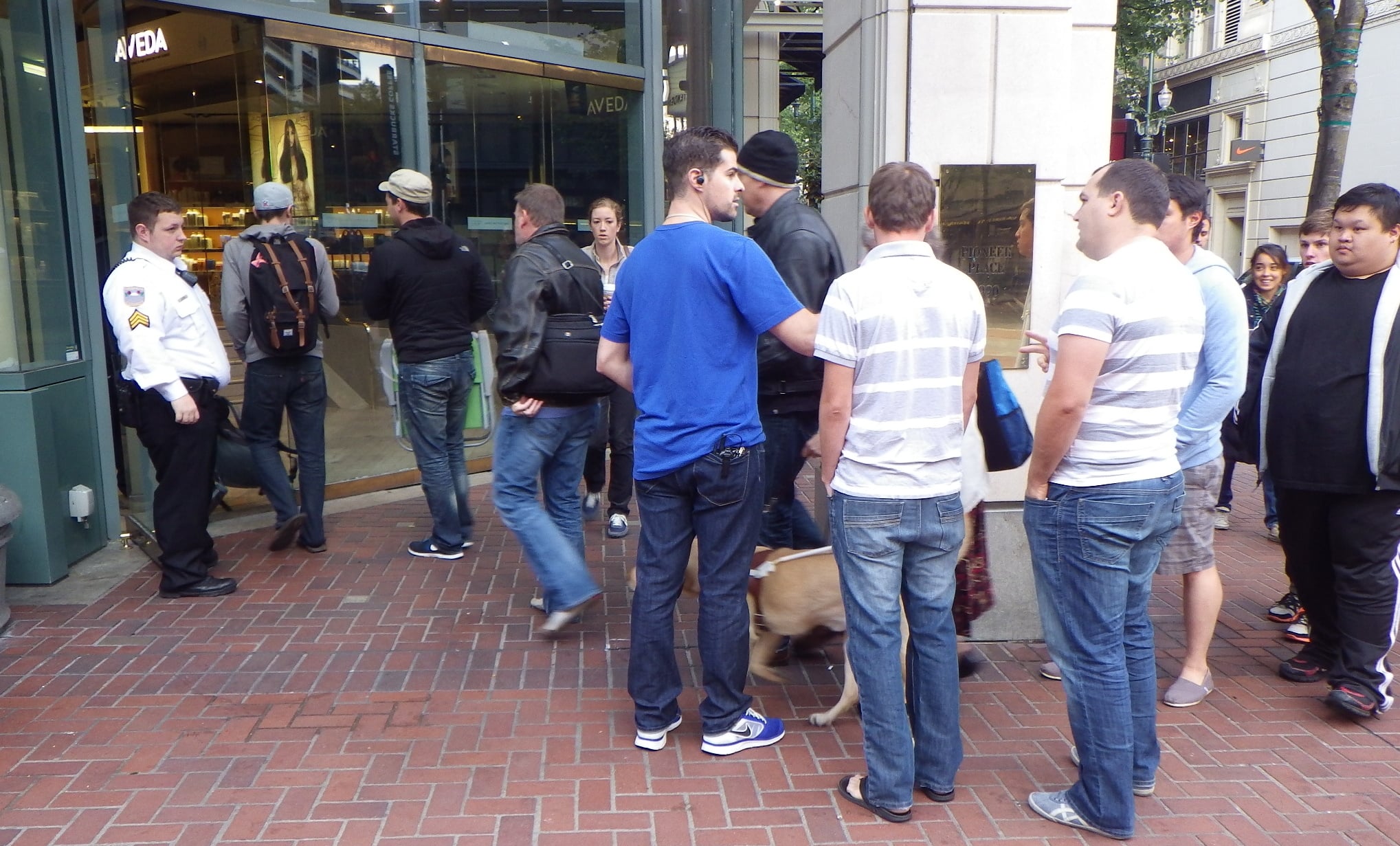 Most of the people I interviewed in line were going for the iPhone 5S, which kind of surprised me. The iPhone 5C, Apple’s “budget” model wasn’t popular among the crowd. Most of them were previous iPhone owners, either upgrading from the iPhone 4 or 4S. Only one person I talked to was an iPhone 5 owner, who was jonesing for the “champagne” or gold-colored iPhone 5S. (Guess that guy hasn’t heard that he won’t be able to get his hands on one until next month.) Apple’s angle with the iPhone 5C is more about getting first time iPhone owners on board, of which I did not see a lot of in the line. Not surprising, since only the toughest of the iDrones people in line would wait in line so long for something this trivial. I can definitely see more iPhone 5C users getting their units at Wal-Mart, where the price is lower and Rascal scooters are plentiful.