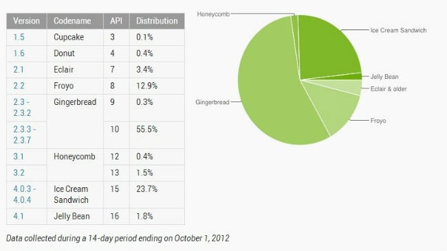 Ice Cream Sandwich now on 23.7% of devices, Jelly Bean at 1.8%