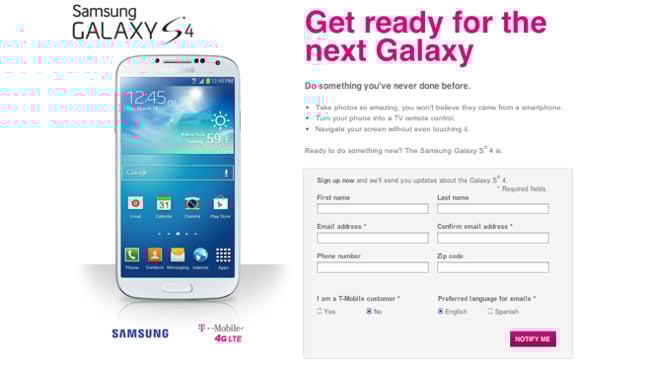 T-Mobile to sell the Galaxy S4 for $149 down, starting April 24