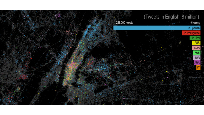 James Cheshire, Ed Manley, and Oliver O’Brien of the University College London’s Centre for Advanced Spatial Analysis (CASA) thave eamed up with John Barratt of Trendsmap to create a map of New York that shows the languages of the tweets that are flowing out from the city. Though 95% of tweets in New York are…
