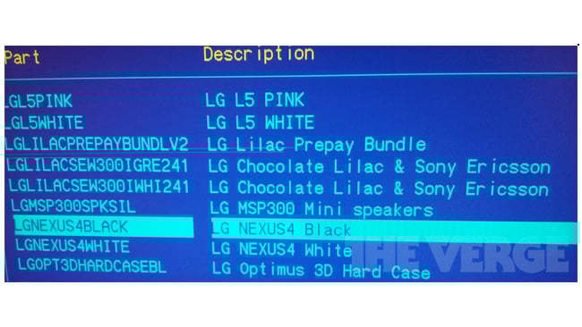 LG Nexus 4 spotted in Carphone Warehouse inventory system