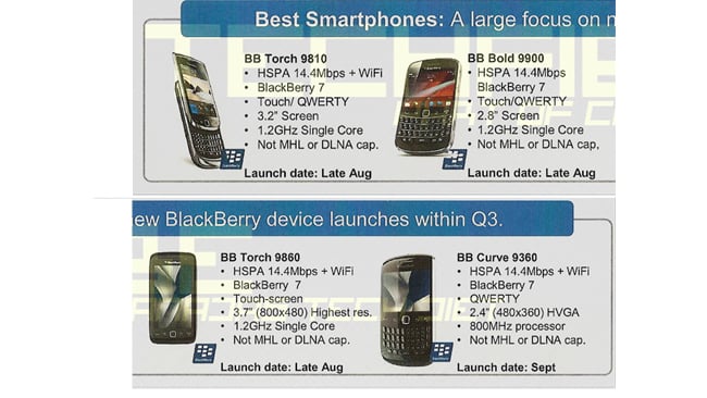 A quick glimpse into Bell’s BlackBerry lineup for the summer has provided some launch windows for Canadians to look forward to. Despite RIM saying they would be missing the back-to-school rush, Bell is listing a late August launch for the Torch 9810, Bold 9900, “Monaco” 9860, and Curve 9360. Bell won’t be alone in launching…