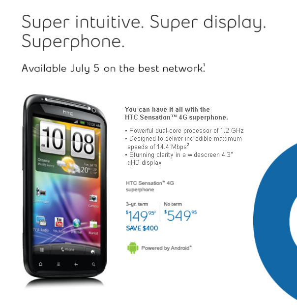 The HTC Sensation has been out in the U.S. for a couple of weeks, earning accolades across the board, and now Canadians will have a shot at enjoying it. Bell just launched it today, complete with the dubious “4G” tacked on to the name. It’s going for $149.95 on a three-year contract, or $549.95 without.…