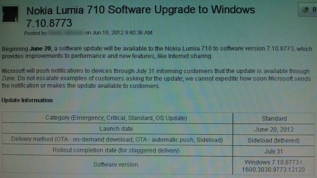 The T-Mobile Nokia Lumia 710 is supposed get Windows Phone Tango today