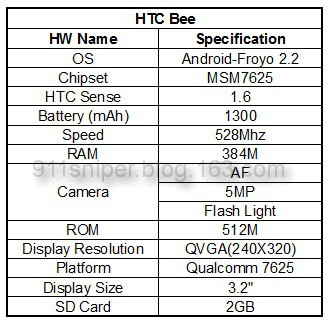 HTC Bee: an entry level Android 2.2 handset for Verizon?