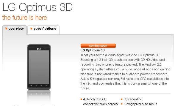 LG Optimus 3D hits the “coming soon” page at Orange UK