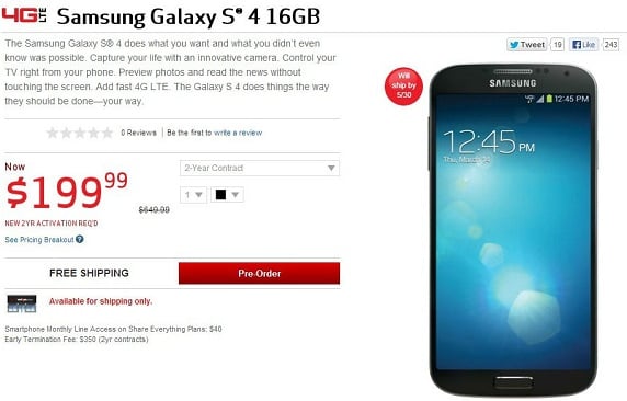 Verizon’s Samsung Galaxy S4 Available For Pre-Order