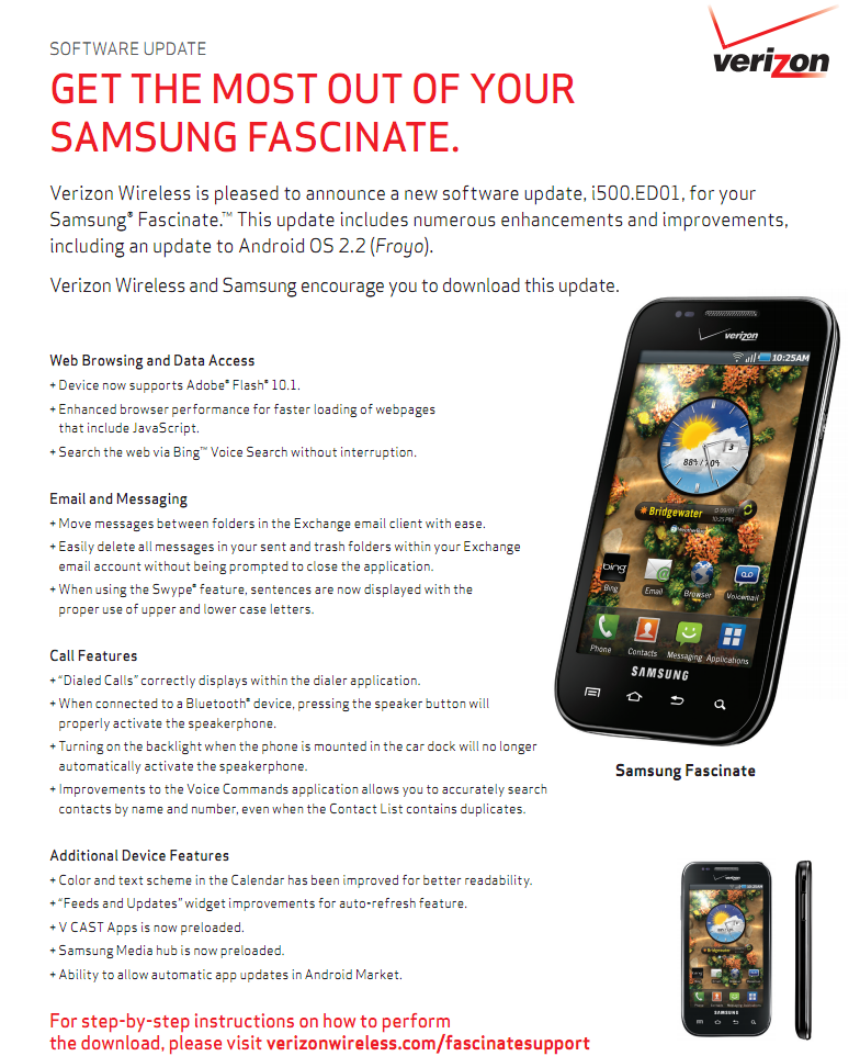 Verizon’s Samsung Fascinate getting Froyo treatment today