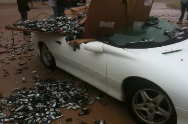 Have you ever wondered whether 1,500 pounds of cell phones would destroy a Camaro?