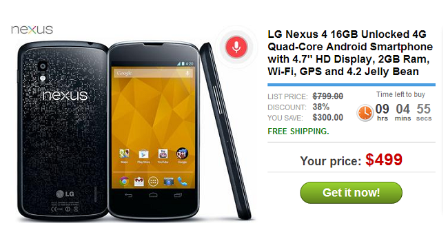 Still looking for the Nexus 4? Daily Steals offering it up for $499
