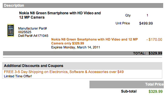 Hot Deal: Nokia N8 in vomit green for just $330 from Dell [4 days only!]