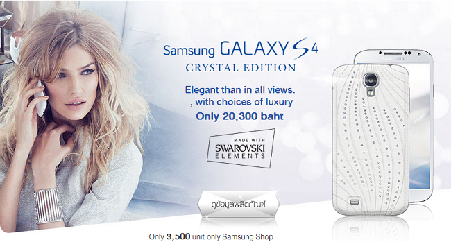 Samsung is proving to be the Kings of Bling, releasing another variant of their flagship Samsung Galaxy S4 smartphone, this time in emblazoned with crystals. The Galaxy S4 Crystal Edition is now available in Thailand from the Samsung store, and carries a price tag of 20,300 baht, or $630. Considering the device has Swarovski crystals…