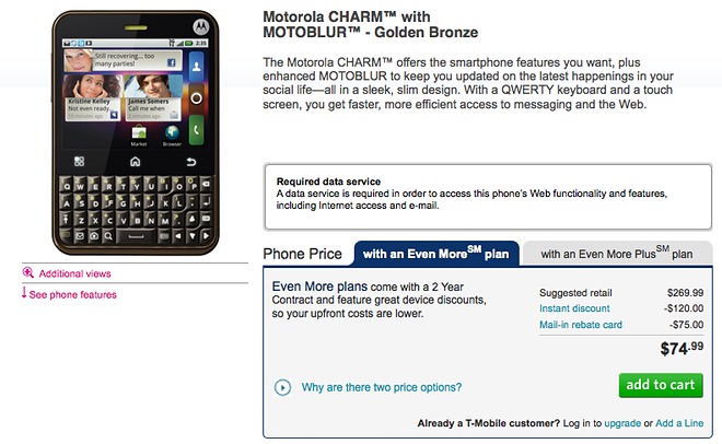 Motorola Charm Now Available Online from T-Mobile