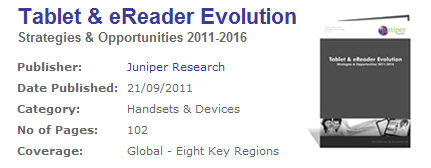 In its latest report titled “Tablet & eReader Evolution: Strategies & Opportunities 2011-2016,” Juniper Research is assessing the growing tablet market. According to the company, the number of tablet shipments will reach 253 million by 2016, which is nearly a five-fold increase from the 55.2 million tablets expected to ship this year. Although most tablets…
