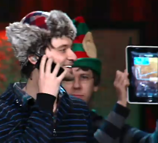 The North Point Community Church had a concert recently in Atlanta that featured a seven-man band made up of folks holding mostly iPads, but also a few iPhones. They run through Carol of the Bells using apps like SoundGrid, MelodyBell and iGog; Rockin’ Around the Christmas Tree with Percussions, PocketOrgan, and Saxophone Musicofx; and Feliz…