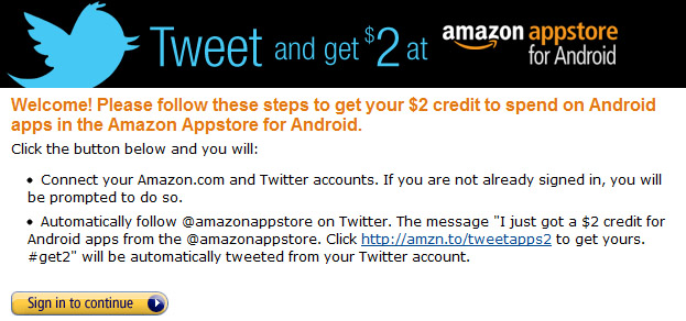 Let’s face it – most people flock to the Android Market, prompting third-party app stores to innovate to attract users. Amazon knows this and as part of the marketing strategy for its Appstore, it is running a neat campaign, offering users a $2 Appstore credit in exchange for a single tweet. In order to take…