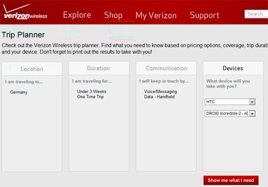 Verizon Wireless’ Trip Planner helps users plan their roaming costs