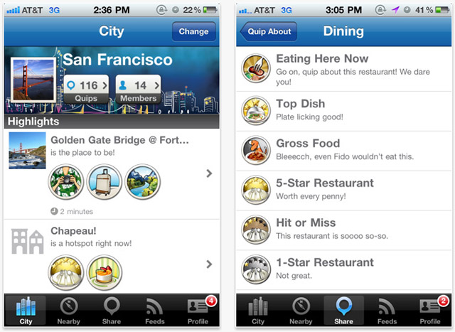 Quipster is a new iPhone app that wants to provide users with a better way to check-in. According to the official release, using Quipster makes it “fun and fast to share and discover what matters in your town.” This “trick” is achieved by providing context via icons while making checking-in more fun and social. Foursquare…