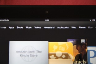 The tablet comes with a pretty decent set of specifications. The Kindle Fire HD packs a 1.2GHz dual-core CPU, 1GB of RAM, a PowerVR GPU, this on both the 16GB or 32GB version (I tested the 16GB version). Moreover, you’ll find Bluetooth, and the very cool MIMO Wi-Fi, along with an accelerometer, light sensor, and gyroscope. The camera is placed under the screen on the front of the Fire, and apparently it holds a HD lens that it takes photos at a 720p resolution (I’ll have more on the camera later).